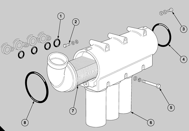 exchanger to the adaptor. Insert the six bolts,