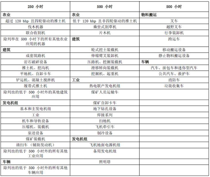 降至250小時。有關應用的信息,請參閱您的設備供應商所提供的手冊,或參考以下表格。如果需要更多的