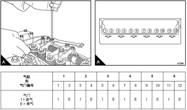 4設置1號氣缸的氣門(B1和B2)。然后檢查/調整6號氣缸的氣門(B11和B12)間隙。