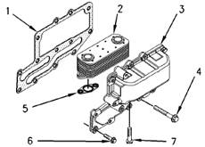 1.清潔機(jī)油冷卻器座(9)和機(jī)油冷卻器體(4)的配合面。如果拆下了機(jī)油冷卻器座(9),清潔機(jī)油冷卻器座和缸體的配合面。