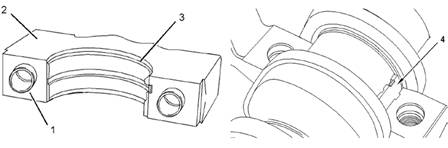 注:安裝下軸瓦(3)時,確保軸承凸舌嵌入相應的主軸承蓋凹槽中。