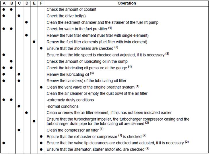 These maintenance periods apply only to engines that are operated with fuel and lubricating oil which conform