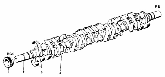 描述:曲軸將活塞的直線往復運動轉化為回轉運動,它為整體鍛造,支撐軸頸為感應淬火后磨光。曲軸靠安裝在曲軸箱上的滑動軸承支撐,并在驅動端設置了四點推力軸承以平衡軸向力。質量平衡是通過用螺栓固定在曲軸上的平衡塊來實現的,潤滑油通過主潤滑油道潤滑曲軸。在曲軸驅動端布置有連接法蘭用以傳遞功率。曲軸減震器和用以驅動齒輪系的齒圈安裝在曲軸的自由端。