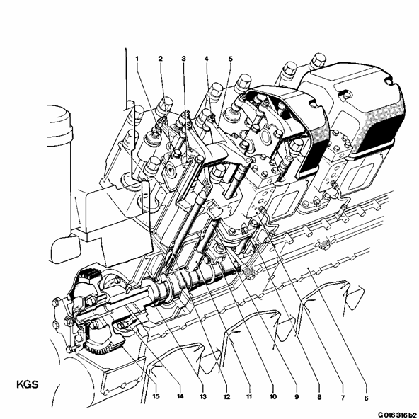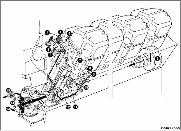 1、調速器 2、聯軸器 3、傳動桿 4、連接機構 5、噴油泵 6、泵體 7、柱塞 8、驅動器 9、驅動器襯套 10、安全控制桿