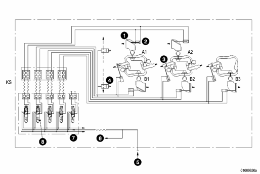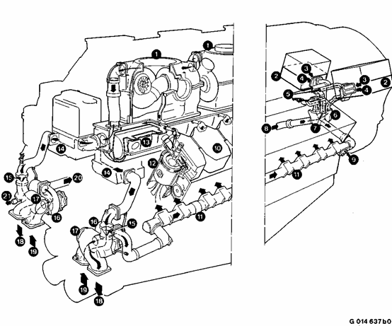 1 高壓中冷器 7 低壓級廢氣渦輪增壓器