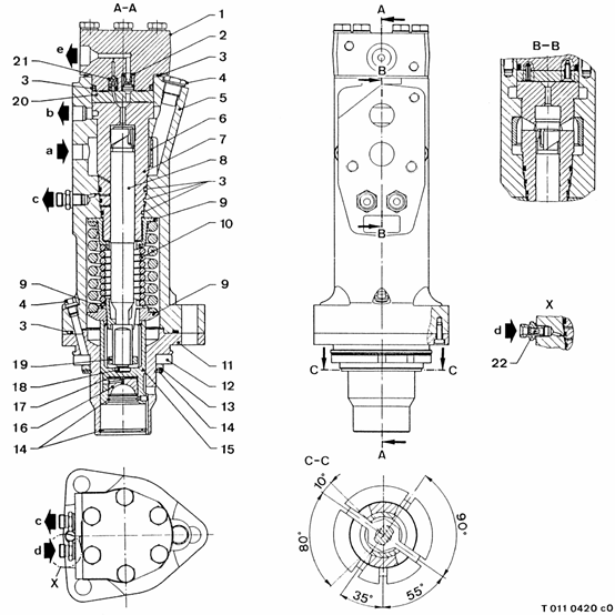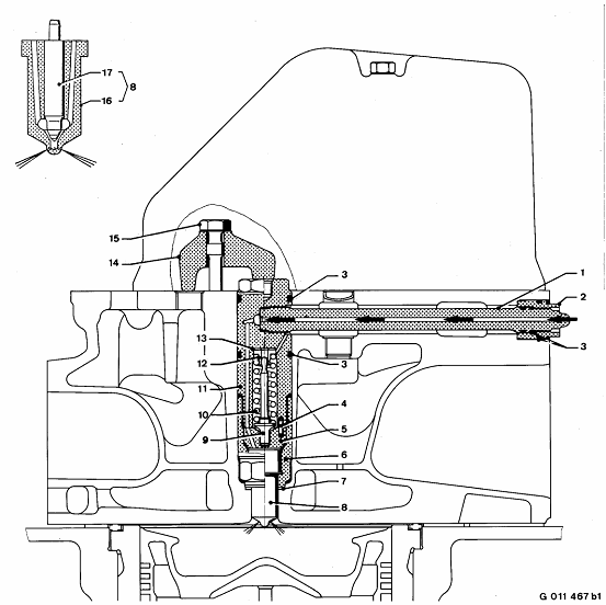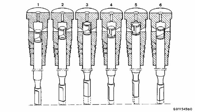 描述:該減壓閥處于缸頭上右側,閥門由處于缸頭上的孔、閥桿和閥座等組成。當閥門關閉的時候,錐形的閥桿被壓在缸頭上的孔道內,防止壓縮空氣從孔道內泄漏。當閥門打開的時候,閥桿被提升至較高的位置,閥門打開,空氣從燃燒室內通過減壓閥排出。