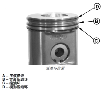 3. 識(shí)別壓縮環(huán)的頂面。方形和楔形壓縮環(huán)的頂部表面有標(biāo)記。