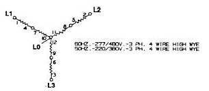 在高Y形連接中最經常見到的電壓是:220/380,240/416或277/480。