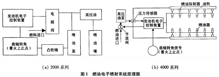 德國奔馳MTU2000系列柴油機(jī)采用電磁閥控制的電子噴射系統(tǒng),其工作原理如圖i(a)所示¨’。它是一個(gè)電磁