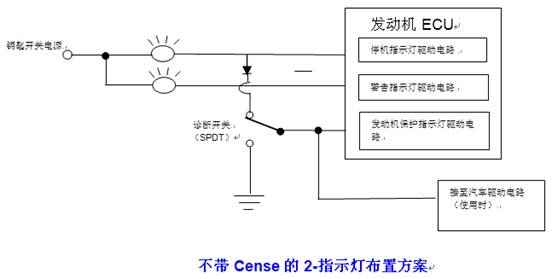 選裝 - 2指示燈布置方案- 用于QSK19/45/60發動機 - 選裝的2-燈布置方案將取消發動機保護(白色)指示燈。因此,操作員儀表盤上只有一個警告指示燈(黃色)和一個停機指示燈(紅色)。所有通過發動機保護指示燈指示的故障將通過停機(紅色)指示燈來指示。這種改進只會影響故障指示燈的線路布置,不會影響軟件或標定程序。參閱下面的線路圖。