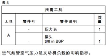 E將步驟4 d的結(jié)果與下述適當(dāng)數(shù)值相比較。流過(guò)發(fā)動(dòng)機(jī)空氣濾清器的空氣不得超過(guò)以下量:最大阻力3.71 kPa (149 in H:O2)