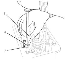 6松開(kāi)進(jìn)氣門橋上的鎖緊螺母(7)。