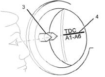5使用工具(A)旋轉(zhuǎn)曲軸,使飛輪上相應(yīng)的標(biāo)記(4)與指針(3)對(duì)齊。確保搖臂和連接件之間存在間隙。