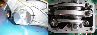 要保證康明斯Cummins QSK23發動機搖臂軸的正常潤滑, 搖臂軸有鉚釘的一側必須朝向發動機前端并且螺栓孔大的一 面朝下。