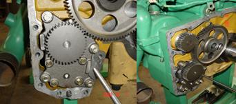 康明斯Cummins QSK23發動機后齒輪系驅動凸輪軸。 一個復合惰齒輪提供所需的速度降。這種布置提供了更小的噪音及更精確的噴油正時控制。