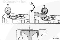測量缸套突出量。參考第 1 節中的步驟 001-064。