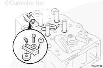 如果缸蓋安裝在發動機上,確保進氣門處在待檢缸蓋的“閉合”位置。這可通過拖動發動機實現。當搖臂松動時,這表明進氣門閉合。