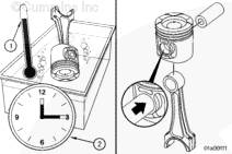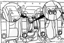 連桿和連桿蓋的號碼必須相同,并裝入正確的氣缸中,否則可能會出現(xiàn)發(fā)動機損壞。