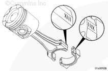 在連桿和與其相配的連桿蓋上蝕刻有唯一號碼(不是缸號)。當(dāng)把連桿和連桿蓋裝到發(fā)動機上時,連桿和連桿蓋上的號碼必須相符,并安裝在發(fā)動機的同一側(cè)。