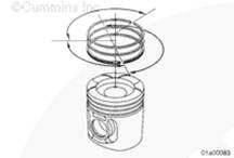 使用活塞環(huán)擴張器(零件號 3823871)拆卸活塞環(huán)。在活塞環(huán)上配一標(biāo)簽,在標(biāo)簽上記錄活塞所屬的氣缸號。