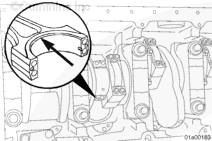安裝連桿時,連桿(右排和左排)上壓印的缸號必須朝向左排凸輪軸。如果連桿安裝得不正確,可能導(dǎo)致發(fā)動機損壞。