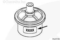檢查溫度以查看節溫器設計為何時開啟。該節溫器設計的溫度為 77°C [171°F]。額定開啟溫度標記在節溫器的側面。