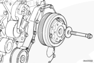 拆卸風(fēng)扇皮帶輪和隔套。參考第 8 節(jié)中的步驟 008-039。