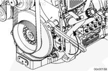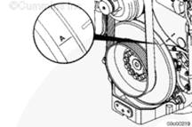 使用康明斯ISX15 CM2250發動機壓縮機驅動裝置或盤車裝置沿發動機旋轉方向順時針(從發動機前方看)盤動發動機。將減振器上的 A 標記與齒輪室蓋上的指示箭頭對齊。