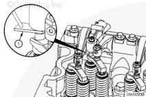 當搖臂和制動器搖臂都松動時,兩個氣門都關閉。如果兩個氣門沒有關閉,旋轉壓縮機驅動齒輪一整圈,并使前減振器上的 A 標記再次對準指示箭頭。