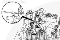 如果工作間隙不符合技術規范,松開搖臂軸螺栓但不要卸下,按所需的方向旋轉軸使工作間隙處于所列技術規范內。在所有 6 個制動器搖臂上設定此間隙并進行確認,這一步至關重要。如果沒有完成這一步則會損壞發動機。