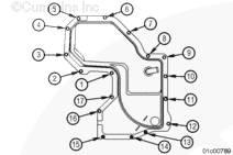 使用康明斯ISX15 CM2250發動機提升設備將齒輪室蓋安裝到下部三個雙頭螺柱上。