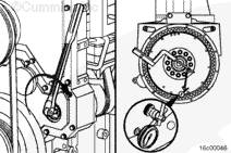 在向前推動康明斯ISX15 CM2250發(fā)動機曲軸的同時,使用壓縮機驅(qū)動裝置或盤車裝置旋轉(zhuǎn)曲軸一整圈(360 度)。