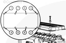 按圖示順序擰緊燃油泵支架和空氣壓縮機(jī)上的螺釘。