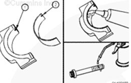 確保康明斯B3.9、B4.5、B4.5 RGT 和 B5.9 發動機軸瓦上的定位舌位于連桿蓋和連桿的槽中。