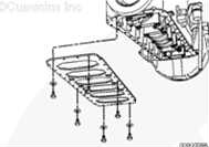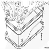 安裝油底殼之前,在油底殼架與后齒輪室之間以及油底殼架與前齒輪室之間的配合面上涂抹 RTV 密封膠(零件號 3164070)。