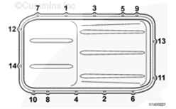 注: 對于有些油底殼/吸油管的配置,其中有一個缸體加強板的安裝螺栓與其余螺栓不同。這個有低螺栓頭的的螺栓應安裝在與吸油管安裝位置相鄰的開口處。有些應用中使用低螺栓頭的螺栓可確保吸油管和缸體加強板安裝螺栓之間有足夠的間隙。