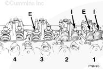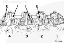 康明斯發(fā)動(dòng)機(jī)在此位置時(shí),可以進(jìn)行下列搖臂的氣門間隙測量: