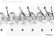 六缸康明斯發(fā)動(dòng)機(jī) 1I、1E、2I、3E、4I 和 5E。
