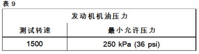 4請(qǐng)參閱表9以確定發(fā)動(dòng)機(jī)機(jī)油壓力是否可以接受。