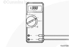 調整萬用表以便測量電阻。然后將一根測試導線插入 OEM 線束接頭的離合器踏板位置開關信號觸針。將另一根測試導線插入康明斯離合器踏板位置開關回路觸針。將鱷魚夾與萬用表表筆相連。