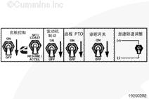 除康明斯巡航控制功能外,巡航控制選擇開關還具有增大/降低怠速轉速、PTO 轉速、故障代碼閃爍、道路車速調速器極限等功能。