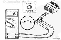 將測試導線插入原始設備制造商 (OEM) 線束接頭的巡航控制 ON/OFF 開關信號觸針,并且將其與萬用表表筆相連。將另一根表筆接觸康明斯ISF3.8 CM2220發動機缸體接地。