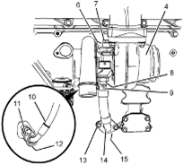 9將管組件(14)安裝到Perkins1106A/C發(fā)動(dòng)機(jī)渦輪增壓器(4)上。安裝螺栓(9)并用手?jǐn)Q緊。