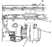 12.將螺母(18)從Perkins1106A/C發(fā)動(dòng)機(jī)渦輪增壓器(4)上拆下。從Perkins1106A/C發(fā)動(dòng)機(jī)排氣歧管(16)上卸下Perkins1106A/C發(fā)動(dòng)機(jī)渦輪增壓器(4)。