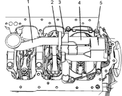 3卸下螺栓(5)。將Perkins1106A/C發(fā)動機機油泵組件(4)從Perkins1106A/C發(fā)動機缸體上卸下。