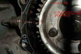 7.懷疑到曲軸正時齒輪移位,于是拆檢齒輪室,發現曲軸正時齒輪已經崩齒且移位圖